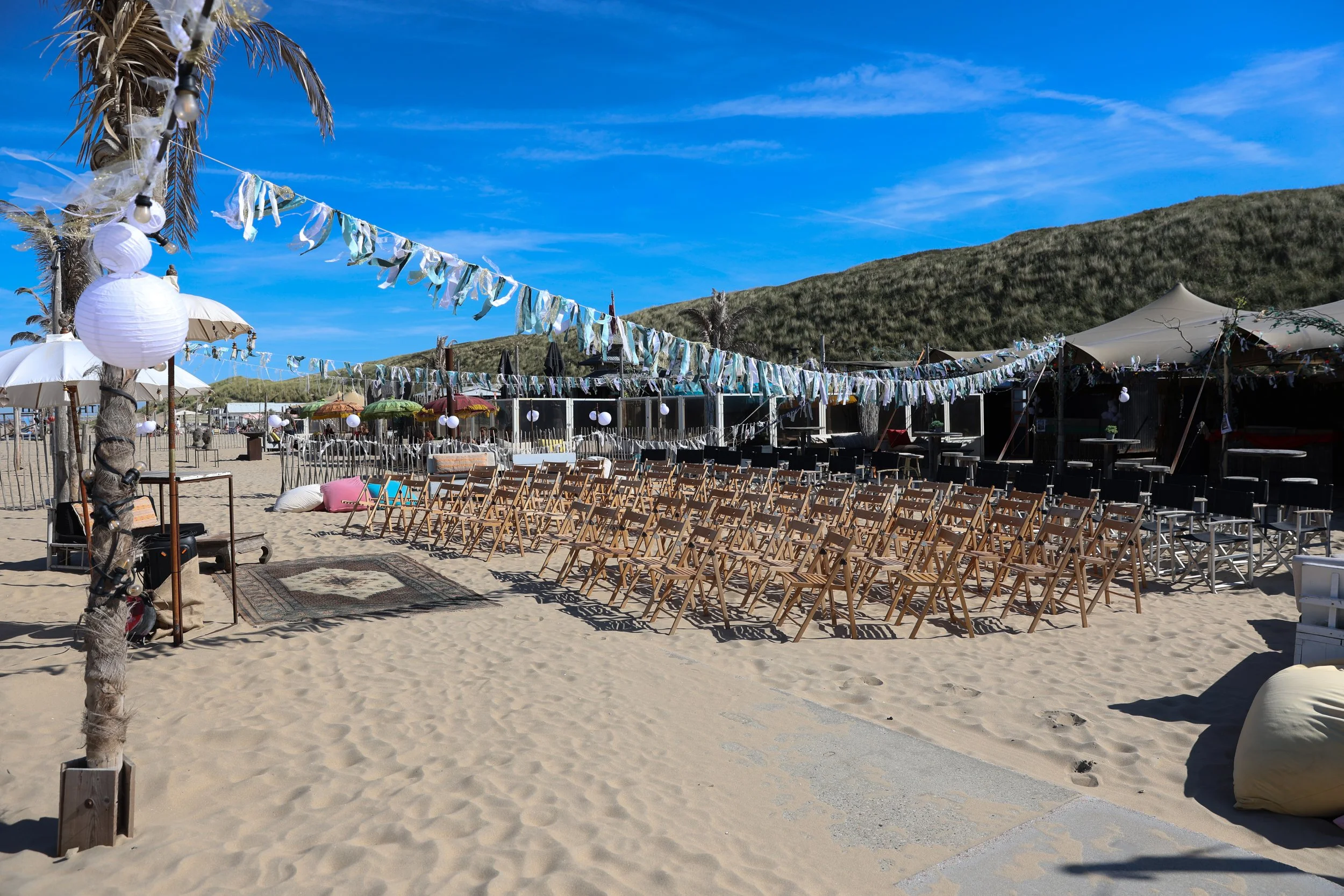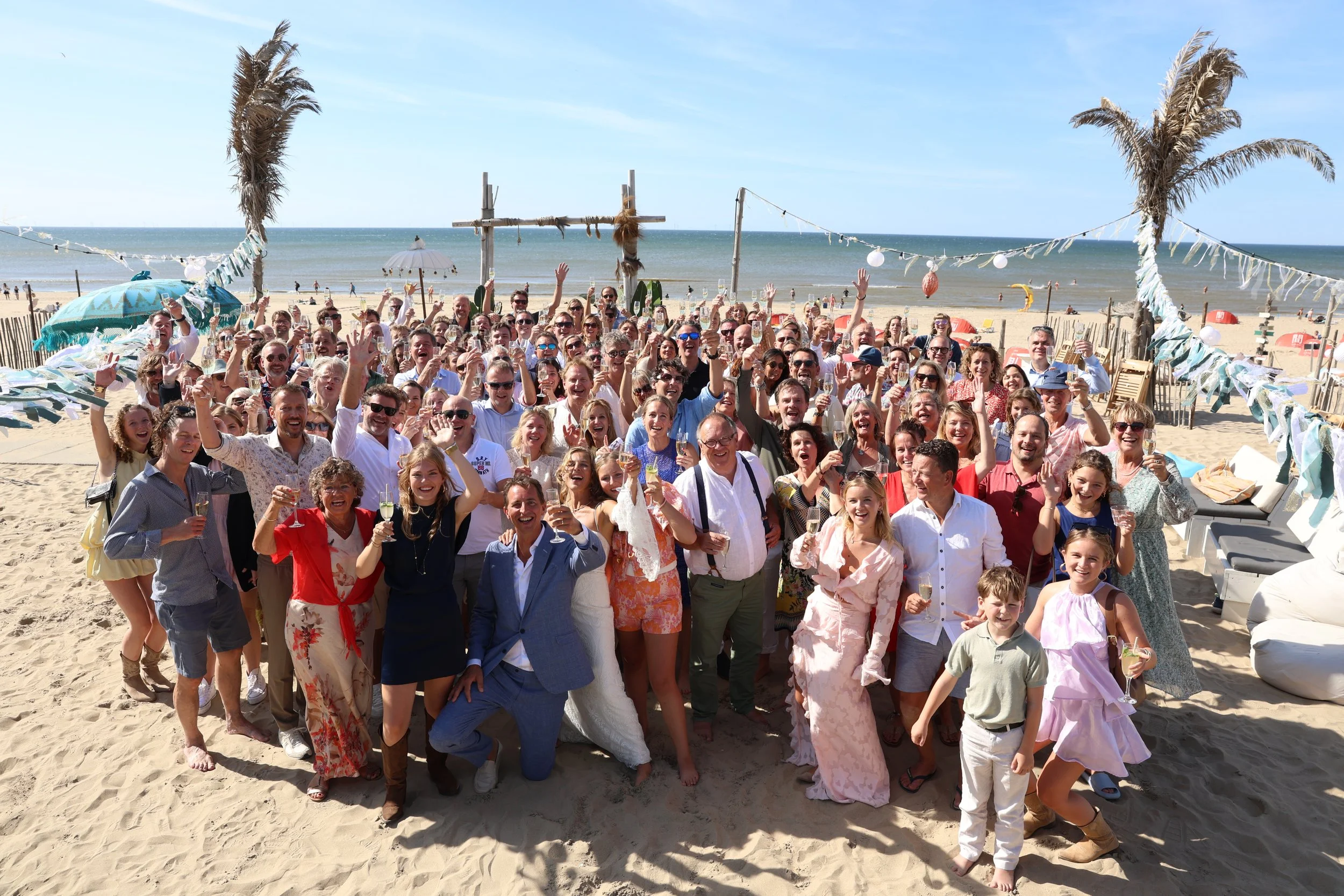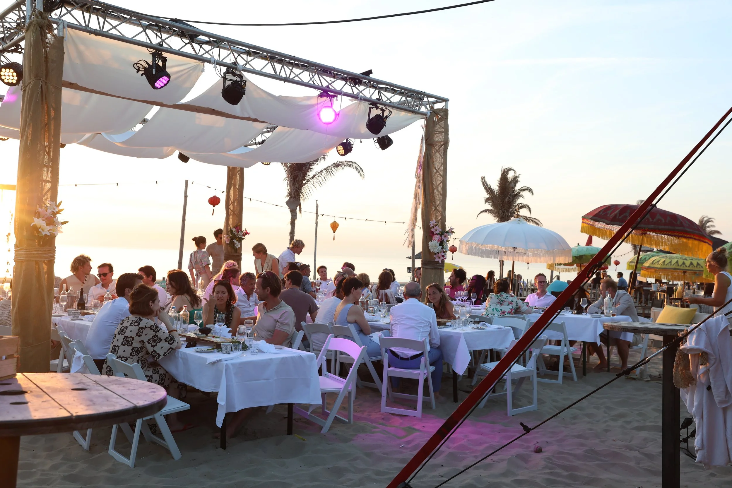 Wij ontvangen gezelschappen tot 500 personen en bieden verschillende mogelijkheden: van een intieme ceremonie op het strand tot een groots feest in onze sfeervolle locatie. Dankzij de combinatie van strand, zee en onze faciliteiten kunnen jullie alles – ceremonie, diner en feest – op één plek laten plaatsvinden.